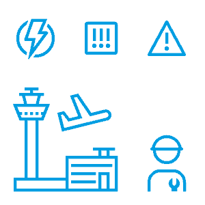 | Letališke steze, ploščadi, terminali, hangarji, kontrolni stolpi, zemeljski promet znn+zps+zo |